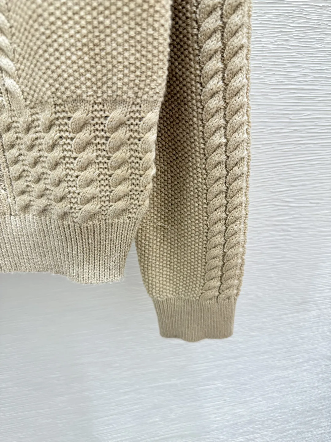 A classic Christian Dior inspired cable knit with a quiet strength. Softly structured with a natural ease, it’s the kind of piece that lives on the back of a chair, ready for slow mornings, evening walks, and everything in between.