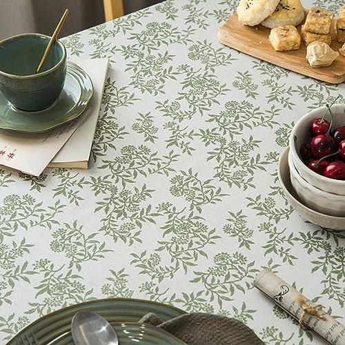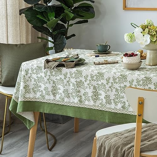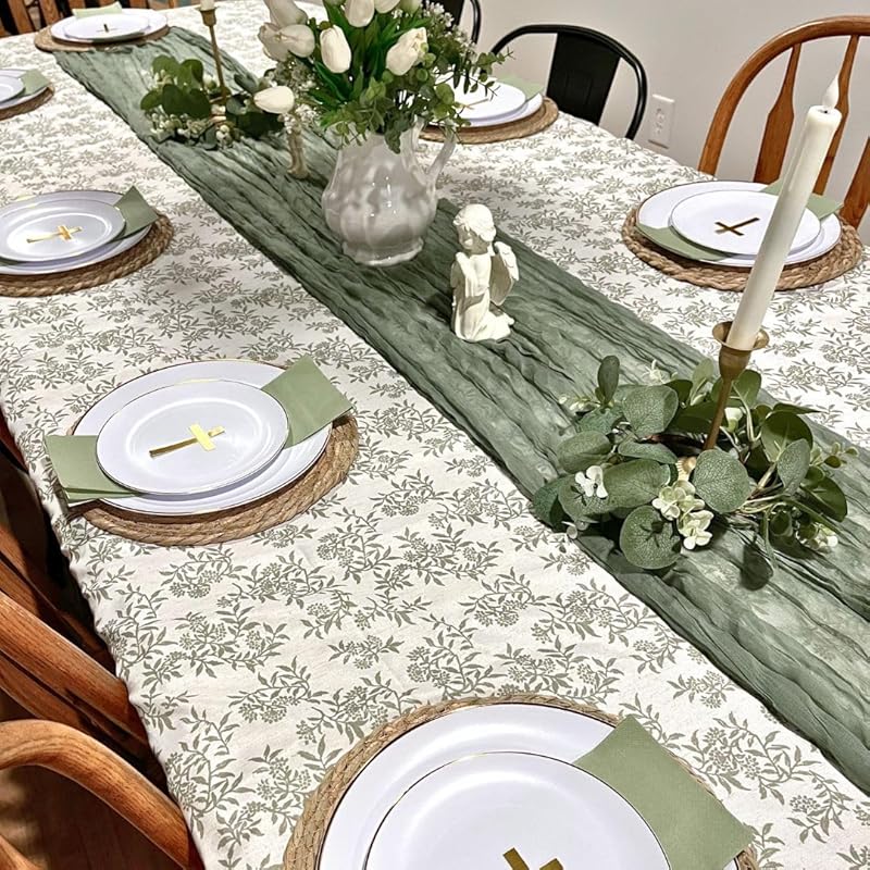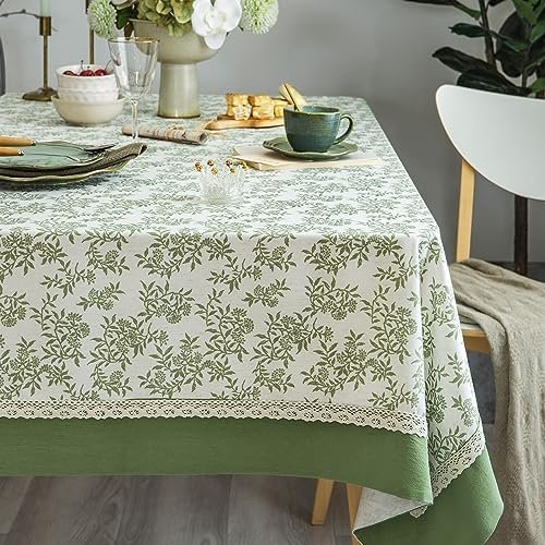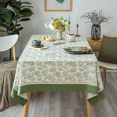 I absolutely adore this tablecloth! It’s stunning! I love the lacing. I used it for my son’s First Communion dinner setup. Although my pictures don’t capture the green color very well, it looks truly lovely in person. It’s perfect for a charming country cottage ambiance. Other reviews mentioned the sizing was off. I got the 55×120 and it fit my large table but I would recommend maybe sizing up for your table.