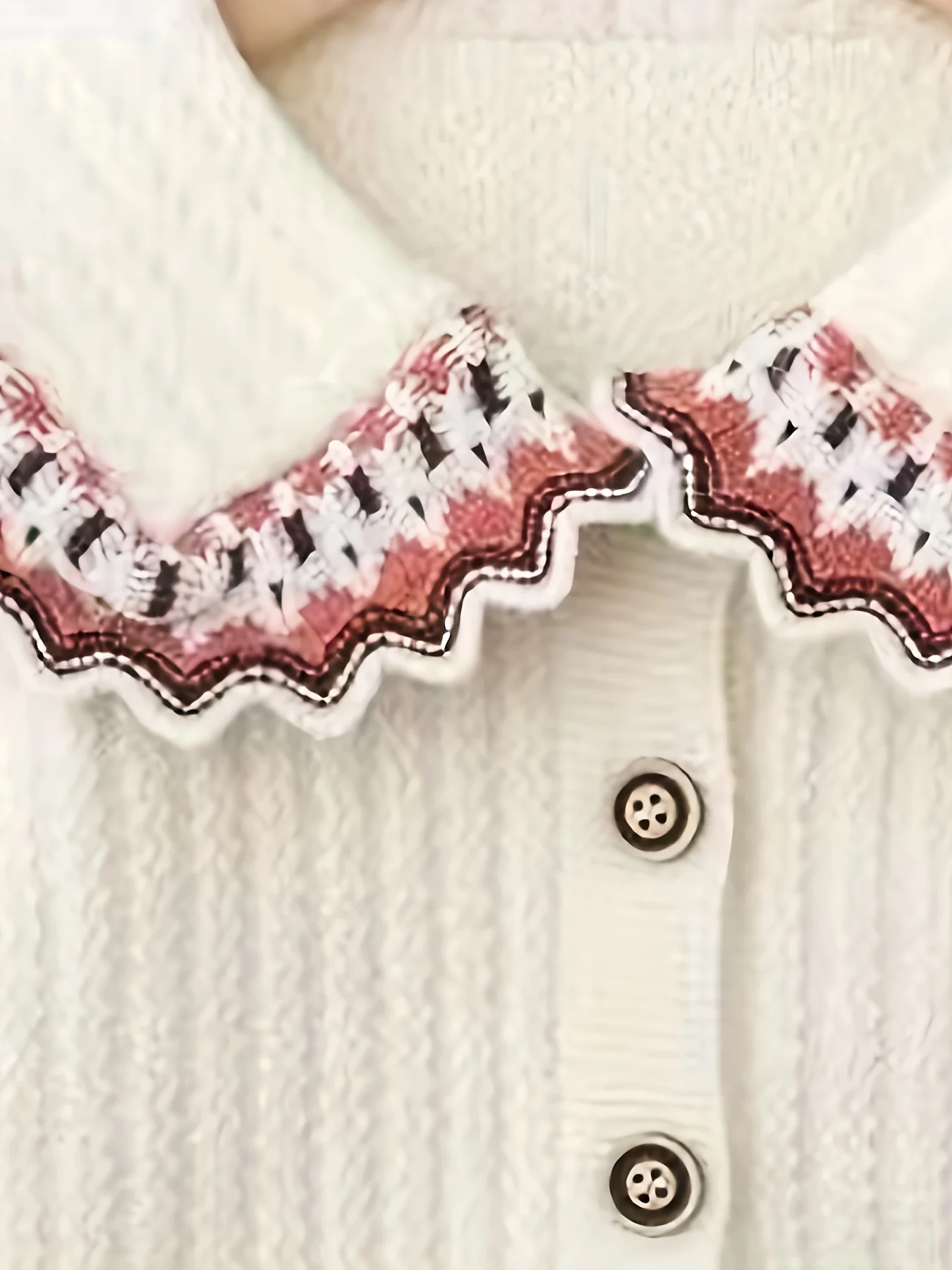 A creamy knit trimmed in rosy pink and cherry red — delicate, cheerful, and just right for layering. With its gentle pop of color and classic shape, it’s made for tea parties, twirls, and quiet days close to home.