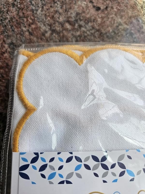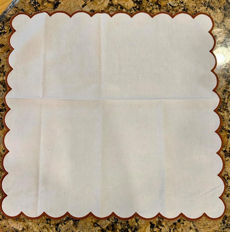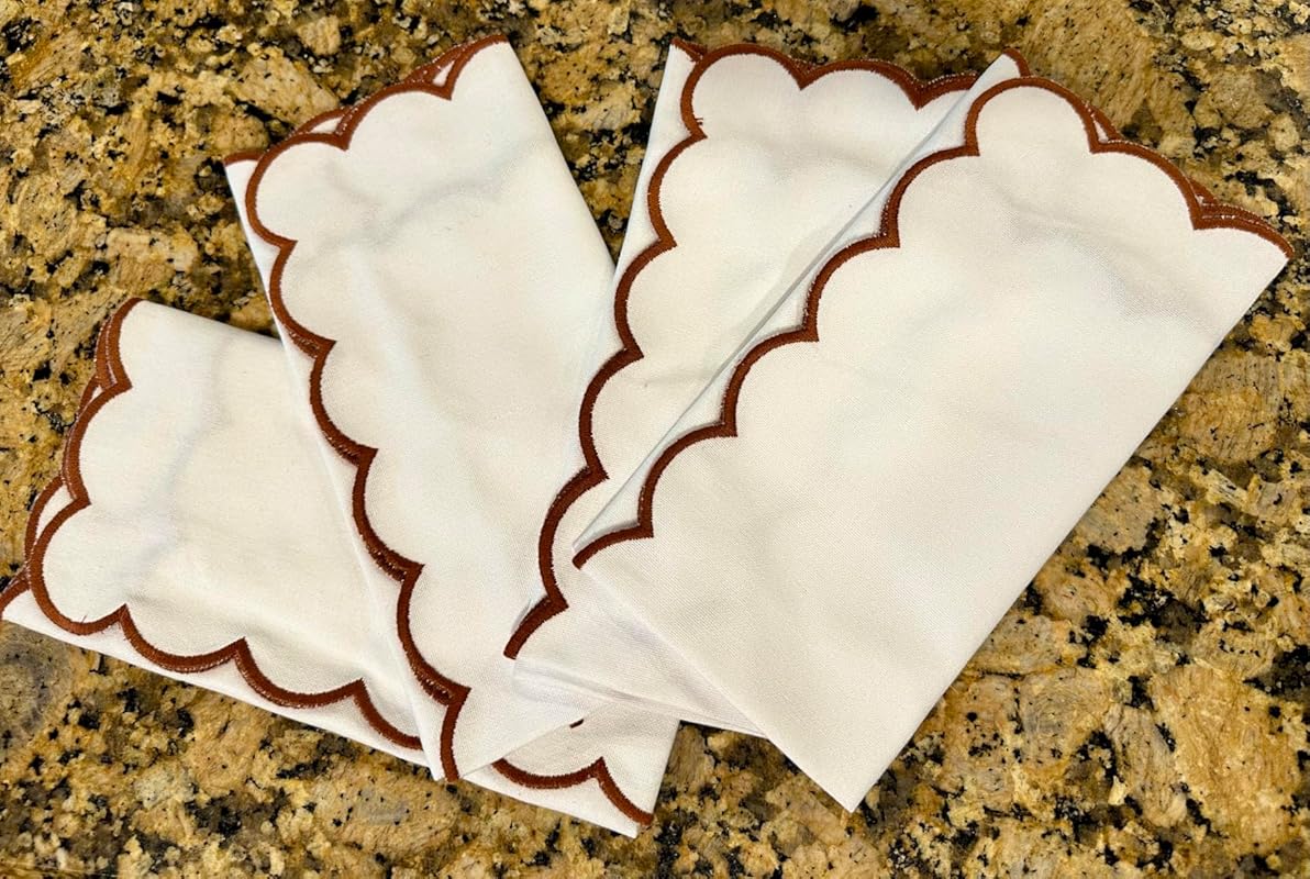 This is a lovely set of 4 cotton napkins with satin-stitched scalloped borders and beautiful embroidery, and I couldn’t be happier! The stitching is done really well, and they look fantastic.Cleaning them is a breeze! You can wash them by hand or pop them in the machine. I like to take them out of the dryer while they’re still a little damp; it makes ironing so much easier!If you’re interested in personalizing them, they’re perfect for monogramming! Just take them to a local business that offers that service. At just $20.99, this set is an amazing deal! I definitely recommend giving them a try!Thank you for reading my review! I hope you found it helpful and motivating.In my reviews, I aim to provide potential buyers with a comprehensive understanding of the product. I strive to share as much information as possible, often including pictures and sometimes videos. My secondary goal is to help sellers enhance their products while highlighting their features. Most reviews are written within a few weeks of receiving the product, and I will edit my review if necessary after some time has passed.
